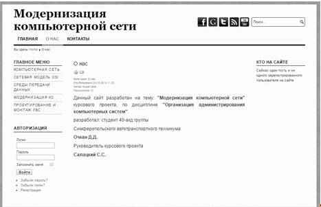 Страницы Главная, О нас, Компьютерная сеть, Сетевая модель OSI, Среды передачи данных, Модернизация КС, Проектирование и монтаж ЛВС, Прикладной уровень, Уровень представления, Сеансовый уровень, Транспортный уровень, Сетевой уровень, Канальный уровень, Физический уровень - это статические страницы. На них отсутствует возможность редактирования информации.