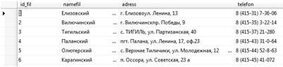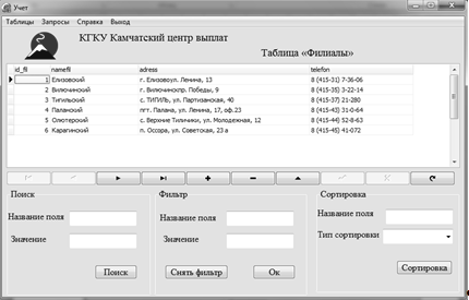 Была создана АИС "Учёт" при помощи языка SQL, выводящая информацию о филиалах,