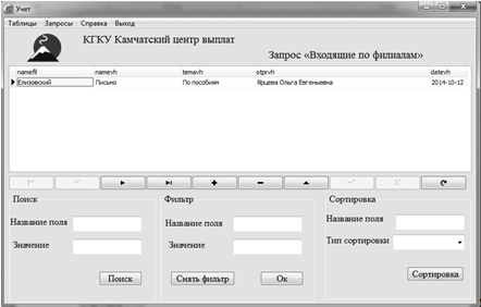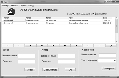 Рис. 22 Запрос "Исходящие по филиалам" (результат)