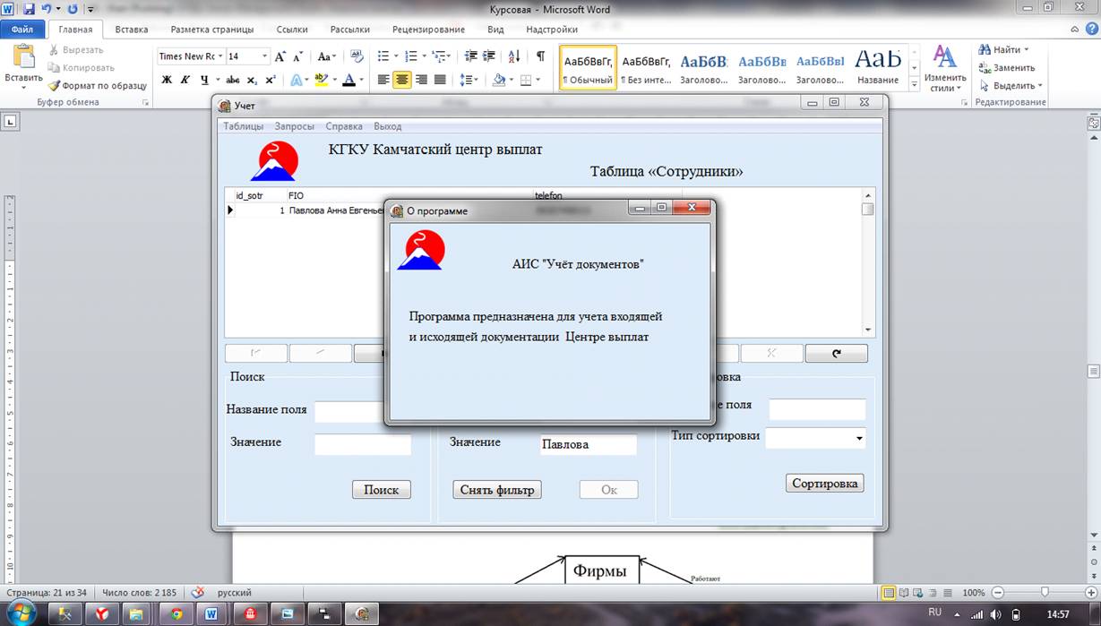Объектом рассмотрения данного проекта является систематизация работы сотрудника центра выплат. Автоматизация рабочего места, обеспечивает снижение трудовых и временных затрат на составление отчетов, на поиск, хранение информации. Поскольку разрабатываемая система предназначена для работы сотрудника центра выплат, она должна быть многофункциональной, продуманной и простой в эксплуатации.