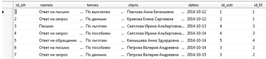Рис. 13 Запрос "Исходящие по сотруднику"
