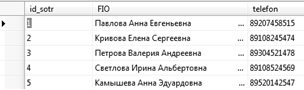 После чего на экране отображается выбранная таблица (Рисунок 19).