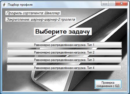 которое пользователь вводит данные и программа выдает нужный профиль сортамента