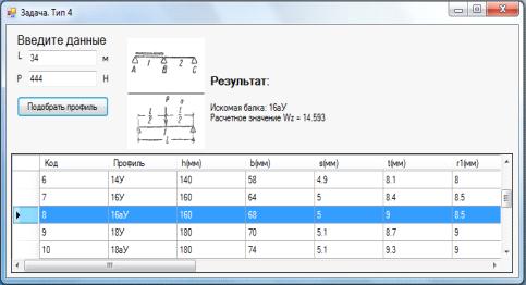 В остальных формах, связанных с подбором балки, аналогичный код. Меняются лишь формулы для подсчета характеристик и названия форм.
