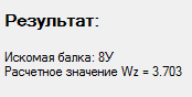 }.Text = "Искомая балка: " + otvet + "\nРасчетное значение Wz = " + Math.Round(W, 3); //вывод названия необходимой балки и расчетного значения