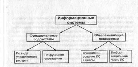 Функциональная часть ИС фактически является моделью системы управления экономическим объектом. В ходе декомпозиции функциональная часть разбивается на подсистемы, конкретный состав которых определяется признаком декомпозиции. Информационная система как сложная и многофункциональная система может быть декомпозирована по различным признакам. Применительно к системам управления распространенными признаками структуризации служат вид управляемого ресурса и функции управления экономическим объектом. Однако в качестве признака декомпозиции могут быть выбраны и другие признаки. Выбор зависит от специфики объекта управления и целей создания формационной системы.