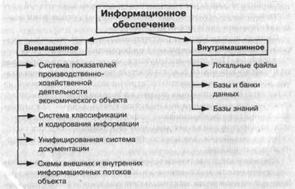В теории автоматизированных систем обработки экономической информации информационное обеспечение (ИО) принято делить на внемашинное, представляемое в виде, удобном для восприятия человеком, и внутримашинное, связанное с хранением, поиском и обработкой информации (рис. 4).