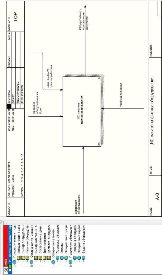 Таким образом, при выполнении курсовой работы, цель и поставленные задачи были выполнены. А именно была реализована система организации на примере магазина фитнес оборудования при использовании программного средства AllFusion Process Modeler. Были построены диаграммы, описывающие функциональную схему магазина по методологиям IDEF0, DFD, IDEF3.