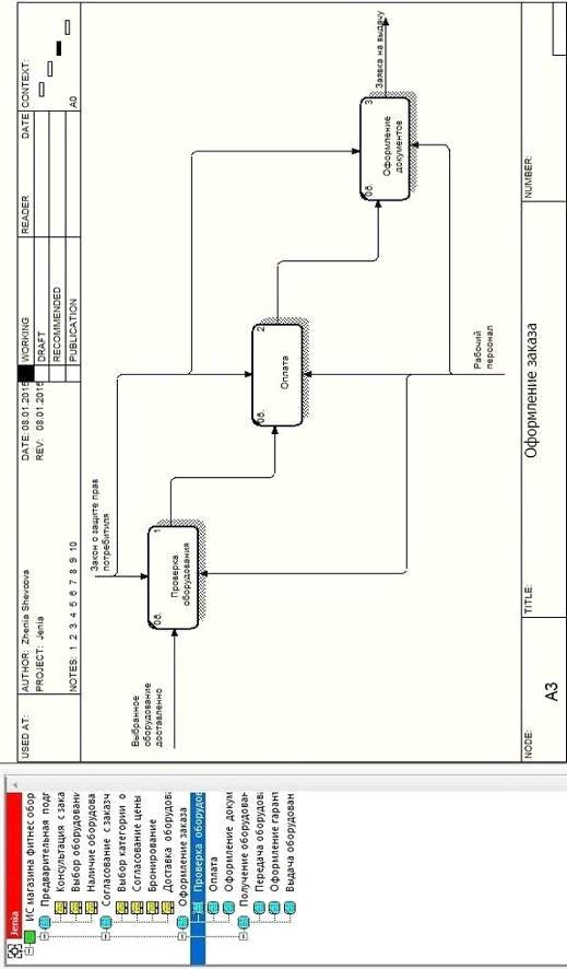 В результате декомпозиции элемента "Оформление заказа", мы получаем систему, состоящую из трех элементов (Рисунок 8): "Проверка оборудования", "Оплата", "Оформление документов".