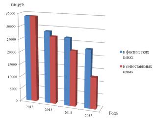 Рисунок 2.2 - Динамика объема реализации услуг в 2012 - 2015