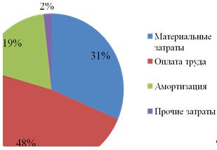 составили 28787 тыс. руб. Из них материальные затраты составляют 13% (2130 тыс.