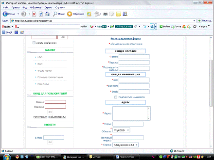 Интернет- магазина компьютерных комплектующих