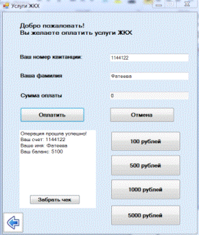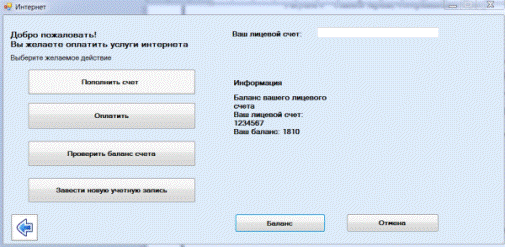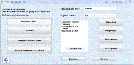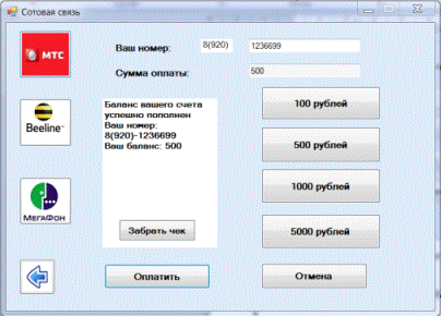 для этого пользователь вводит номер лицевого счета и выбирает сумму оплаты,