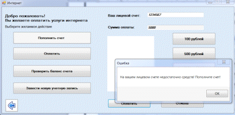 корректно. Теперь мы введем сумму больше, чем есть на данном счету. На рисунке