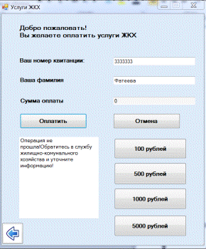 квитанции уже имеющийся в базе, программа не позволит нам произвести оплату.