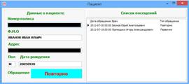 данных о пациенте (см. рисунок 19) где будут указаны предыдущие посещения
