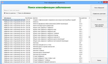 Рисунок 20. Окно поиска классификации заболевания