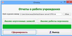 Созданный программный комплекс "Учет обращений пациентов" позволяет вести собственную базу обращений пациентов, а также анализировать результаты оказания медицинской помощи не только на индивидуальном, но и на групповом и популяционном уровнях, и формировать статистические отчеты.