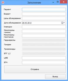 В ходе дипломного проектирования также был разработан программный комплекс "Анализ ИППП", предназначенный для сбора, хранения и обработки информации о результатах анализов полученных из женских консультаций города.