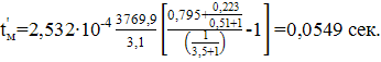По номограмме рис. 113 (б) [13] определяем давление рпм = 0,51 МПа. Время размыкания дисков муфты будет составлять