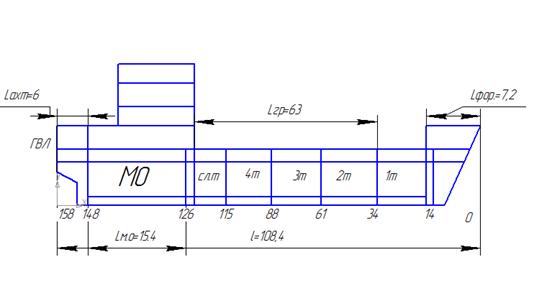 положением машинно-котельного отделения (МКО) по длине судна;