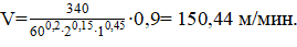 Для составляющей Pz: Ср = 300; хр= 1,0; ур = 0,75; nр = -0,15.