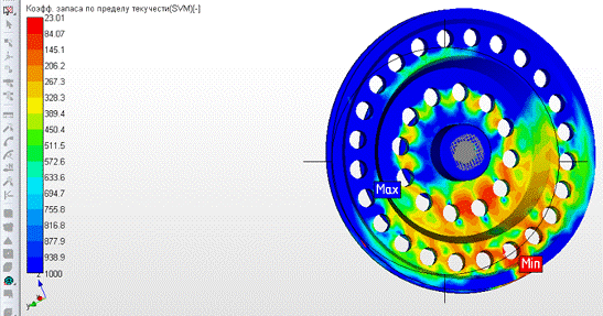 что шкив работоспособен, т.к. минимальный коэффициент запаса равен 23,01.