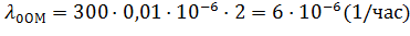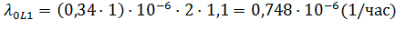 интенсивность отказа системы, 1/час.