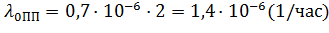 Интенсивность отказа ПП вычисляют по формуле 8.1