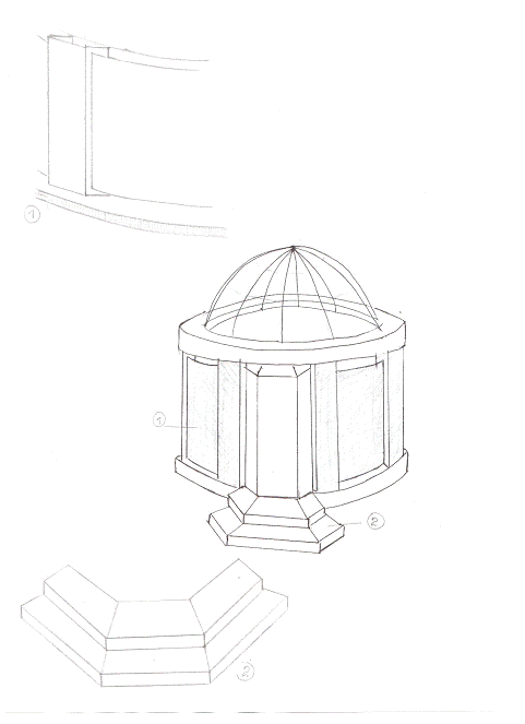 сделаны два эскиза. Первый заключает в себе одну сторону здания, в котором