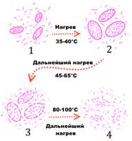 Клейстеризацию крахмальных зерен крахмала можно разделить на 4 стадии (рис. 7):