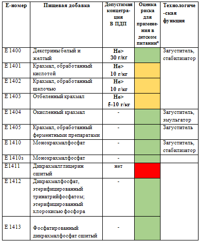 крахмала и их применение в детском питании