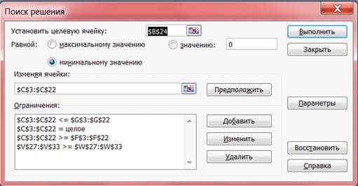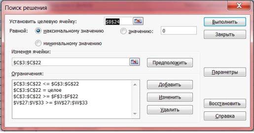 Как и в предыдущем пункте используем функцию «Поиск решения». вводим