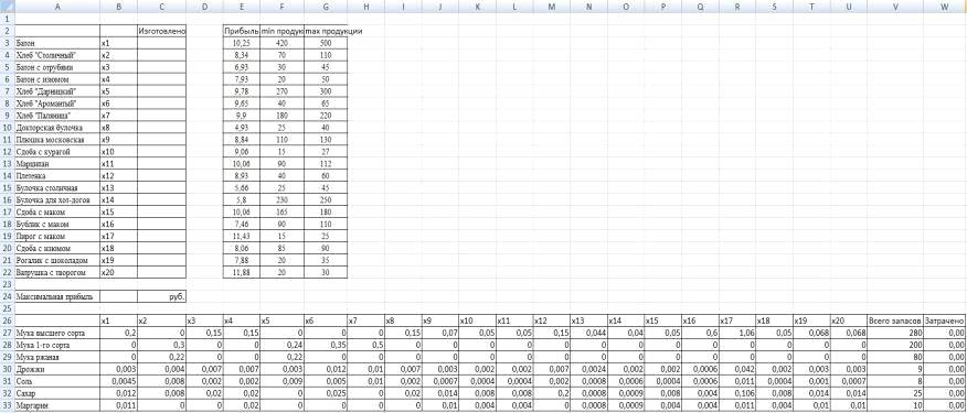 на примере хлебобулочного завода с помощью программы Microsoft Excel 2007.