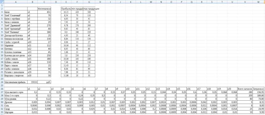 Задача решалась на максимизацию прибыли и на минимизацию себестоимости.