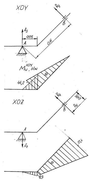 Определим реакции в опорах в плоскостях хоу и хоz (рис. 4.2).