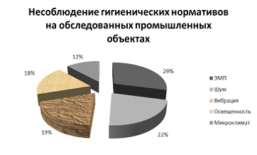 частота случаев несоблюдения гигиенических нормативов по физическим факторам на