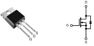 Данный транзистор изготовлен на основе кремния Si и имеет встроенный в цепи «исток-сток» защитный диод. При больших токовых нагрузках полупроводниковый прибор сильно нагревается, и по этой причине непосредственно крепится к радиатору. Транзистор характеризуется малым сопротивлением открытого канала «исток- сток» 0.85Ohm, высокой скоростью переключения и напряжением пробоя сток-исток - 500V. Постоянный ток стока составляет 8A, рассеиваемая мощность - 125W.