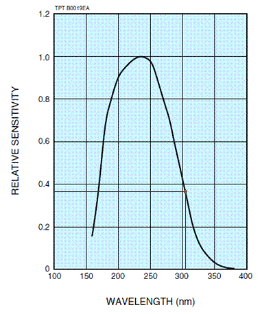 Исходя из зависимости чувствительности данного фотоприемника от длины волны, корректирующий коэффициент на длине волны 308 нм составляет κ = 0.38. Таким образом, плотность мощности Pуд:
