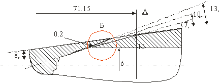 и составляет 21° к образующей модели при максимальном