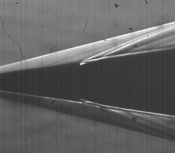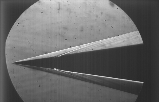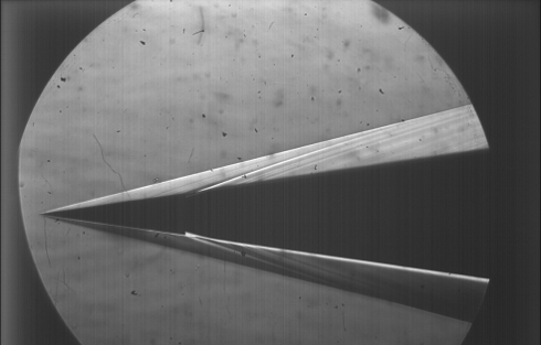 Эта камера имеет запуск от внешнего синхроимпульса, что позволило синхронизовать импульсную лампу и электронный затвор камеры.