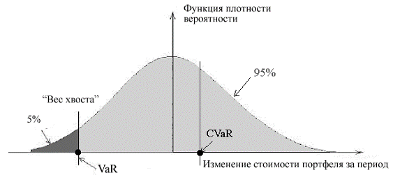 Рисунок 1.6- Значения VaR и СVaR для некоторого