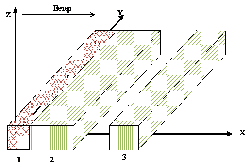 - параллельно земной поверхности. Ось ОХ совпадает с направлением ветра. Под
