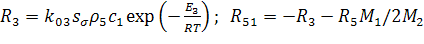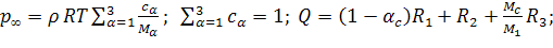 массовые скорости преобразования α-компонентов газовой фазы; q2, q3, q5, -