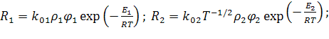 активации и предэкспоненты; αc, νг - коксовое