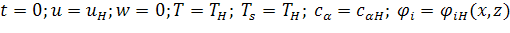 Система уравнений (1.1) - (1.15) должна быть дополнена соответствующими начальными и граничными условиями.