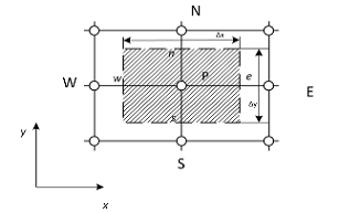 Для численного интегрирования исходного системы уравнений используется метод контрольного объема. Расчетную область разбиваем на некоторое число непересекающихся контрольных объемов. Затем исходную систему уравнений интегрируем по каждому контрольному объему.