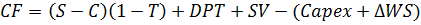 ∆WS - изменения в рабочем капитале: разница между текущими активами и пассивами. Активы - это запасы и дебиторская задолженность, пассивы - кредиторская задолженность.
