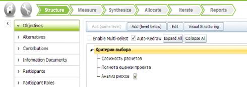 данные о критериях оценки и альтернативах для выбора. Для этого, на вкладке