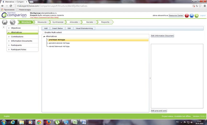 Рисунок 13 - Рабочий стол «Expert choice»